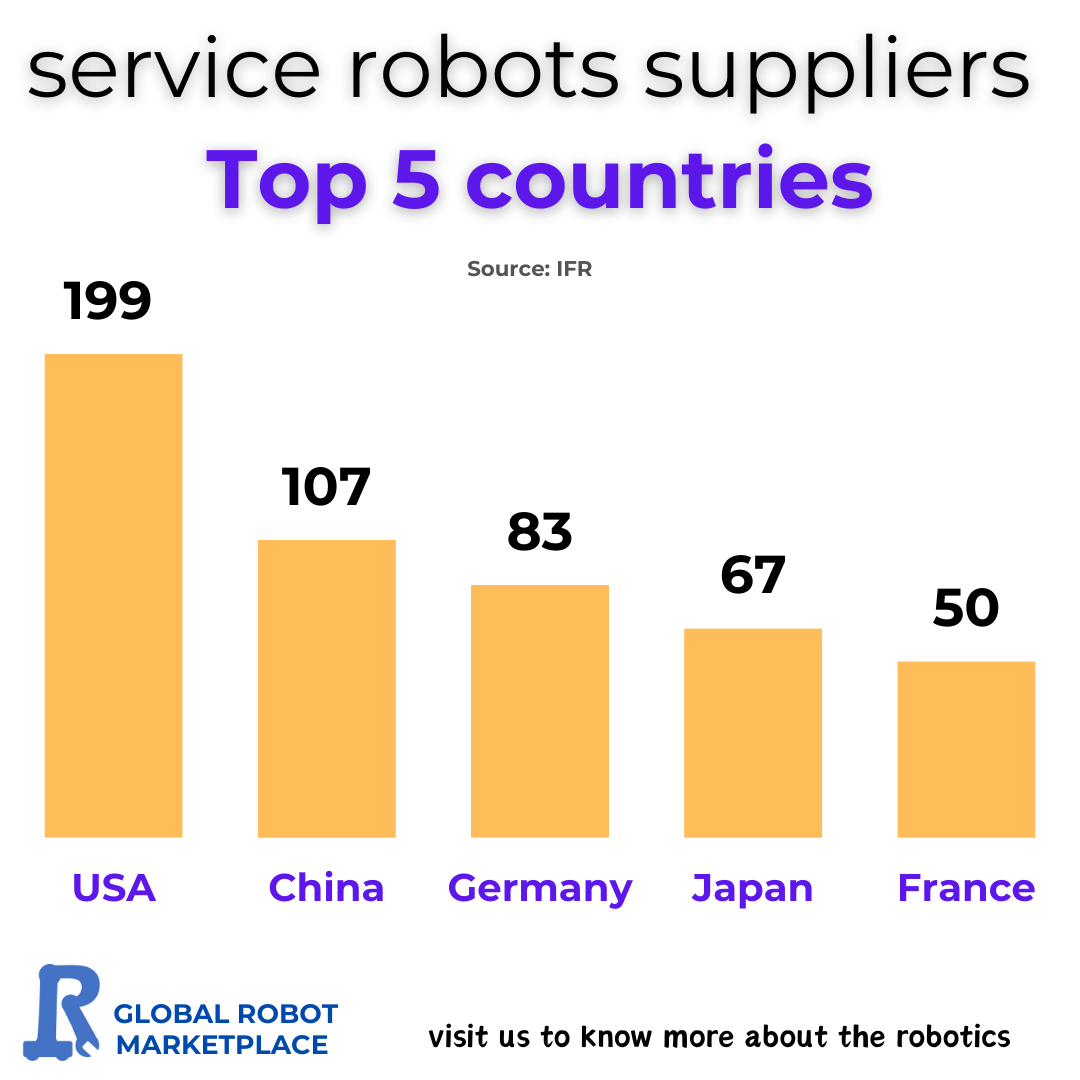 The global robotics industry is exploding with growth, and these five countries are leading the way in supplying the world with cutting-edge service robots! According to the International Federation of Robotics (IFR), the top 5 countries with the most service robot suppliers are: